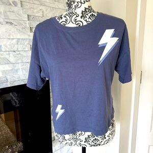 Z Supply Lightning Bolt Cropped Distressed Boyfriend Tee T-Shirt Blue S