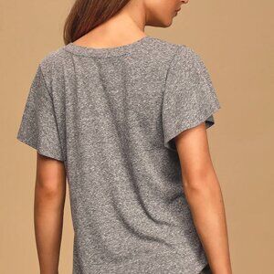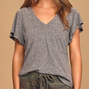 Z Supply The Triblend Heather Grey Flutter Sleeve V-Neckline Tee - Small