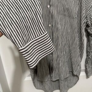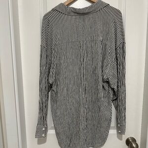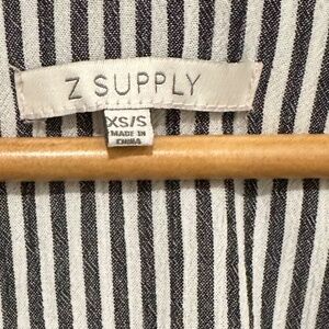 Comfy button down shirt from Z Supply in a gray and white stripe. The fabric is 100% rayon.
