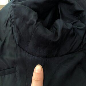 Places of note: Please see last 4 images. Light sheen on elbow area & wear on arm cuff corners. Also, light fade on right armpit area with a snag (last photo)