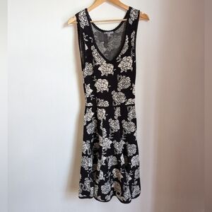 ZAC POSEN Black & Cream Floral Cocktail Dainty Fit & Flare Dress Extra-Small