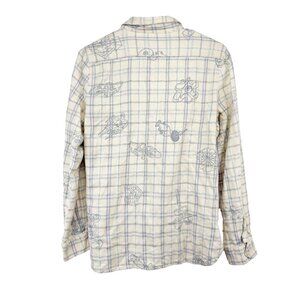 ZADIG & VOLTAIRE Cartoon Sketch Details Cream Plaid Shirt Blue Pink Metallic M