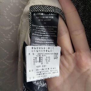 ZADIG & VOLTAIRE Herringbone metallic grey silver wool blazer removal skull pin
