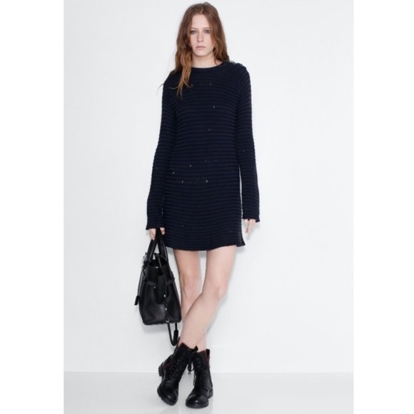 Zadig et Voltaire rounded neckline dress, long sleeves, stripes all over,