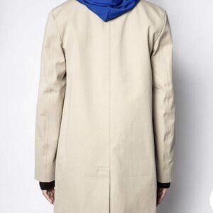 Elevate your wardrobe with the elegant Martin Double Face Coat by ZADIG & VOLTAIRE in beige, a perfect piece to add sophistication and timeless charm to your outfits. Crafted from premium materials, this coat features a soft and luxurious texture, offering both style and comfort. Its clean lines and minimalist design are enhanced by a traditional pointed collar and convenient slip pockets, making it as functional as it is fashionable. This coat is brand new with the label attached and is available in size XL, ensuring you receive a flawless and high-quality piece. The button closure, slip pockets, and a length of 30" add to its versatility, making it an ideal choice for any occasion. Don't miss the chance to own this chic outerwear essential!