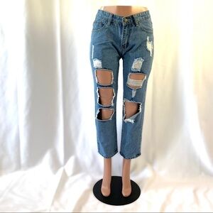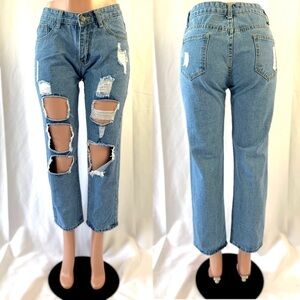 ZAFUL DISTRESS BLUE JEANS STRAIGHT LEG WOMEN SIZE MEDIUM 29