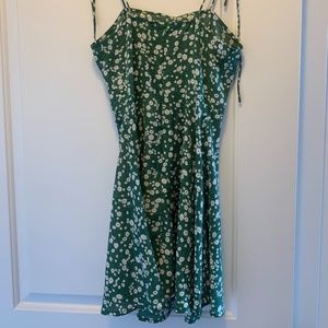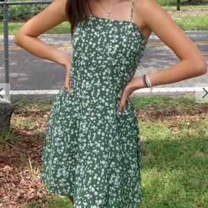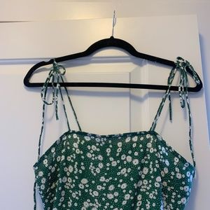 Green floral mini dress with tie straps! Boho-chic. Great for spring, summer, or fall with some cute booties.