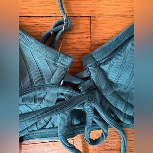 Forest green slight ribbed design Cross tie in front Size med brand new condition