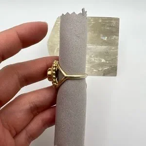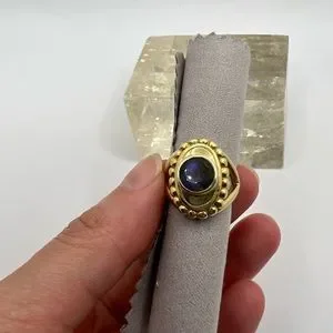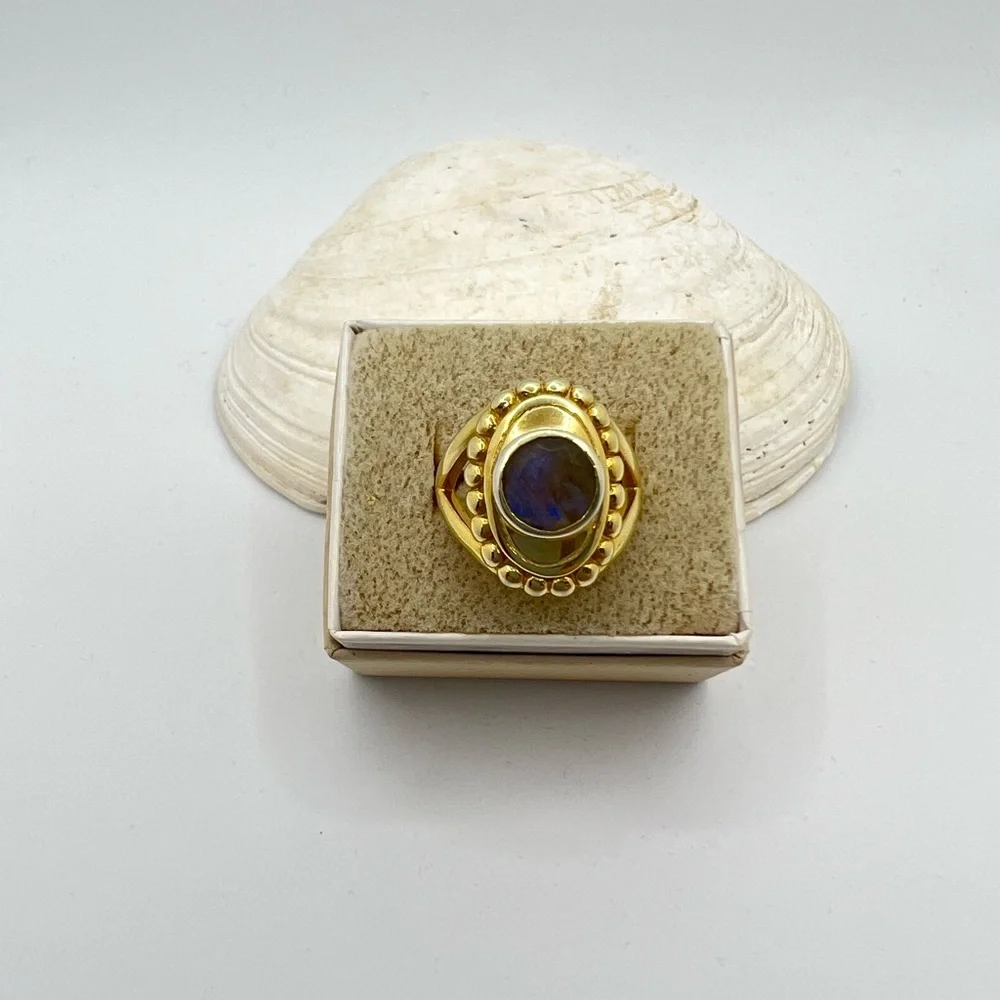 14K gold vermeil statement ring featuring a faceted round labradorite. Size 6