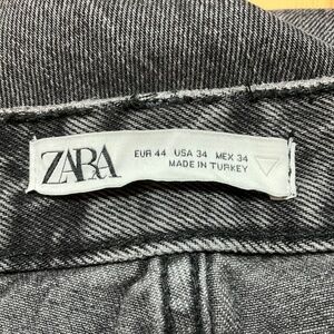 ZARA 100% Cotton Black Washed Cropped Jeans Raw Hem Straight Leg Button Fly 34