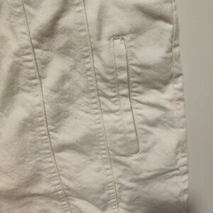 Super cute 100% cotton cream colored high rise shorts with two functional front pockets and two non functional back pockets. Because these shorts are all cotton, they have a structured dressier look (just need a bit of ironing lol).