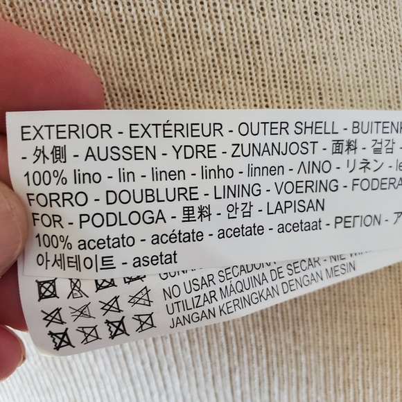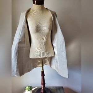 ZARA basics linen jacket. The coated linen is creamy gold. As with any linen there are a few bumps here and there but in otherwise excellent condition. waist height hooked closure.