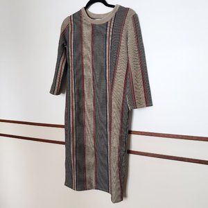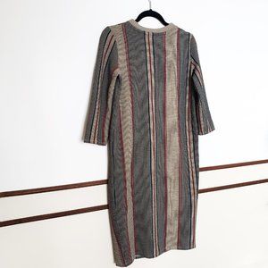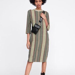 ZARA ; 3/4 SLEEVE MIDI STRIPE SWEATER DRESS