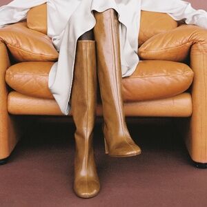 ZARA- 38,39 - HEELED LEATHER KNEE HIGH BOOTS