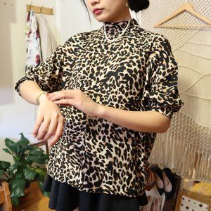 ZARA ANIMAL PRINT TURTLENECK BLOUSE XS/SMALL