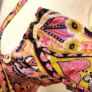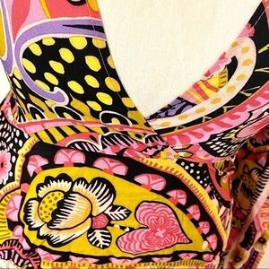 Zara Accessories - mini faux wrap dress in a bright pattern with tie to the back and a partial side zip by waistline. Small flaw by top of zipper as shown in photo. New with tag.