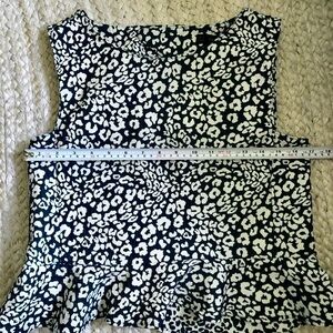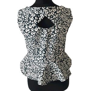 ZARA Animal Print Peplum Blouse Size S Green & White Sleeveless Top Back button