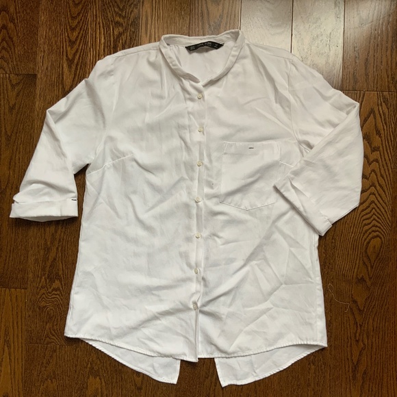 Comfortable collared shirt from Zara. The back has a cut out so it is a great transition piece for from morning to evening. Cotton polyester blend that is super comfy.