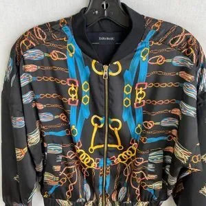 ZARA BASIC Pattern Print Bomber Jacket, has lining, no stretch, light