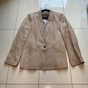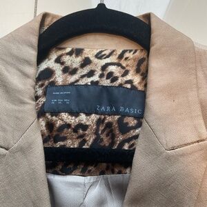 GREAT THROW ON JACKET FOR MANY OCCASION. COLOR TAN WITH ANIMAL PRINT LINING. SIZE XL.
