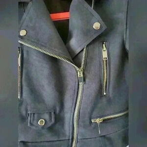Soft and warm suede style biker moto jacket. Cropped hip length. Great condition. The material tag has been removed.