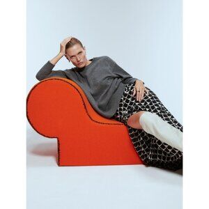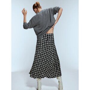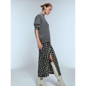 ZARA BLACK & CREAM GEOMETRIC PATTERN SLIT SKIRT, SIZE: XS, LIKE NEW