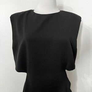MEASUREMENTS : Length: 51,5" Shoulder span : 17" Chest : 19" Side slit lenght: 21,5" ** Approx ZARA BLACK CUT OUT SLEEVELESS COLUMN MAXI DRESS 2157/223, This is a superlightweight black stretch cut out column maxi dress with shoulder pads for a structured muscle top vibe top - crew neckline - gathered on one side giving on a side slit for a sexy and flattering touch for the legs - favorite summer / end of the summer cocktail date dress with strappy sandals and diamonds. Excellent condition. NWOT.