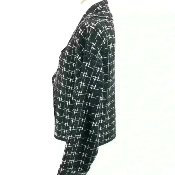 ZARA BLACK WHITE PATERN DOUBLE BREAST TWEED GRID PATERN BLAZER SIZE LARGE