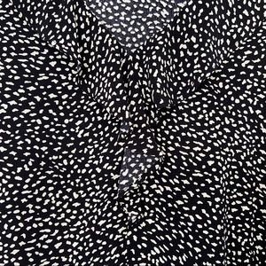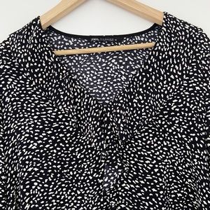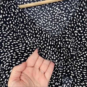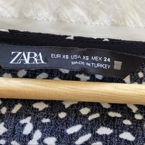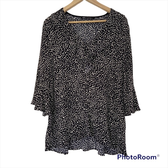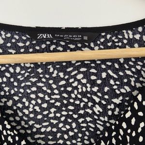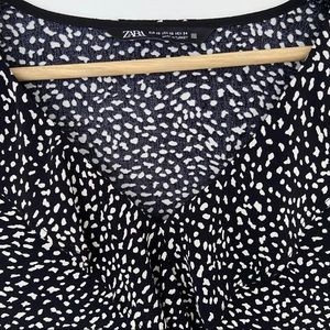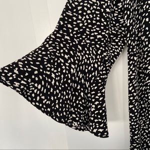 ZARA BLACK/WHITE PRINT PEPLUM TOP/BLOUSE WITH RUFFLE NECK, BELL SLEEVES, XS