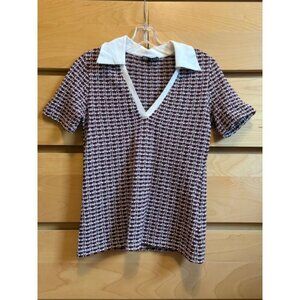 ZARA BURGUNDY WHITE JACQUARD POLO SHIRT, SIZE: S, LIKE NEW