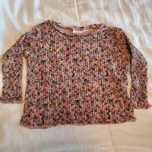 ZARA Baby Girl Floral Ribbed Lettuce Trim Long Sleeve Top 12-18 months