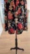Zara Basic Collection jacket has a floral pattern in red, cream and blue on a black background. This lightweight unlined jacket can be worn open or belted. Original tie belt is missing, however you can use your own belt in the loops on the sides as shown in styling. Three gold coloured buttons are on each cuff and a back vent. Rounded lapels and pockets that are still sewn shut. 100% polyester.