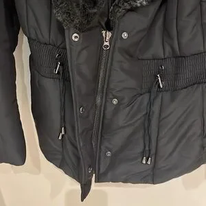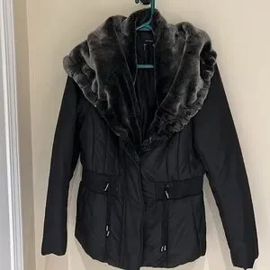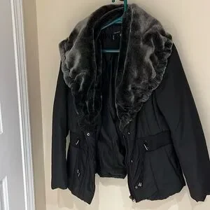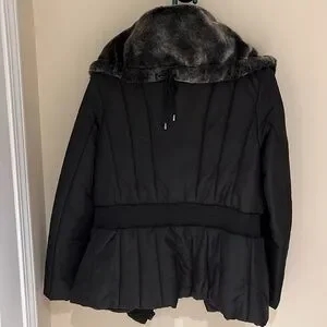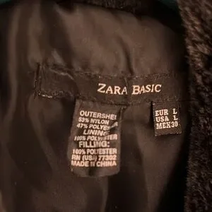ZARA Basic fall/winter jacket with a large faux fur collar and two pockets. Tag indicates size US L but it fits well to a smaller size too.
