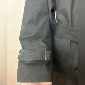 ZARA Basic, size M, long black trench coat, belt, pockets, button up front