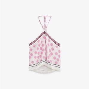 ZARA | Beaded and Embroidered Printed Halter Neck Blouse
