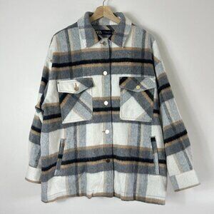 Collared overshirt with long sleeves. Front patch and welt pockets. Button-up front.
