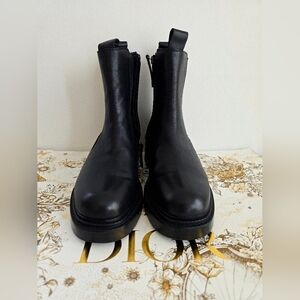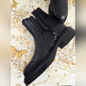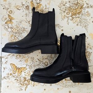 ZARA Black Ankle Low Heel Winter Essential 100% Leather Boots Zipper Size 8