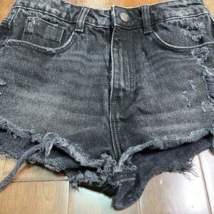 ZARA Black Distressed Denim Shorts sz 4