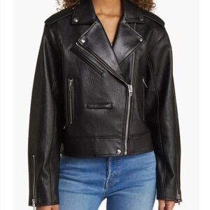 ZARA Black Faux Leather Moto Jacket Bomber Zippers Soft Size Small