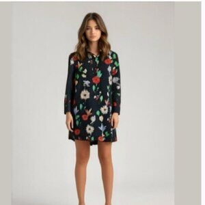 Discover this Zara Black Floral Long Sleeve Shift Dress in size small.