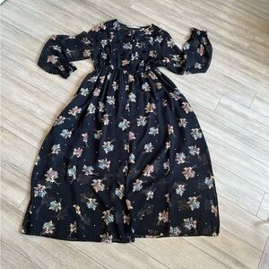 Zara midi dress - sheer black chiffon with floral print. Size small.