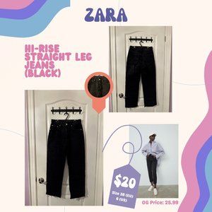 ZARA Black Hi-Rise Straight Leg Jeans (Size 6 US/38 EUR)