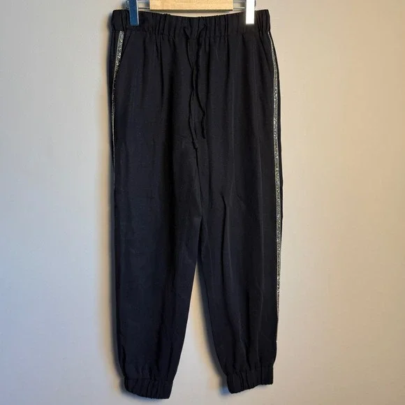 ZARA Black Jogger Pants Embellished Side Stripe Drawstring Waist Tencel Size S