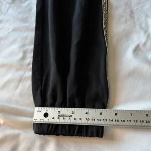 Keywords: ZARA, joggers, black pants, tencel, sparkle, rhinestone detail, drawstring, elastic waist, casual chic, evening wear, lounge pants, designer, comfortable, school, campus casual