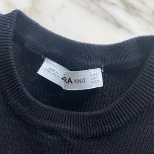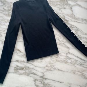 ZARA Black Knit Pearl Accented Open-Shoulder Sweater