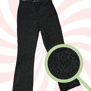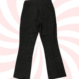 Black capri style dress pants with a cool leopard print pattern in black. These are perfect for those days when you have to be in the office but want to go for happy hour after! You can dress them up or down, and they are so versatile!