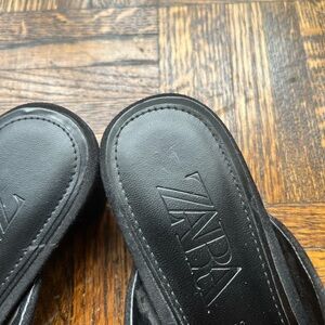 ZARA Black Pointy Silver Sudded Low-Heeled Mules (Sz 38)
