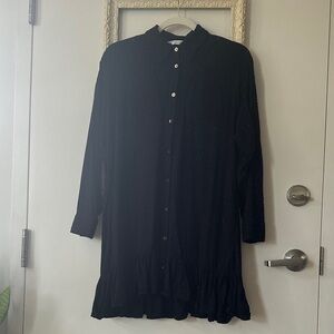 ZARA | Black Textured Button-Up Tunic Mini Dress without Belt