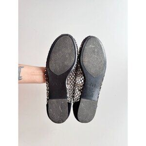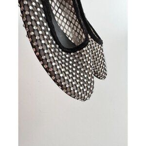 ZARA Black Velvet Mesh Crystal Rhinestone Ballerina Ballet Flats, Size 39