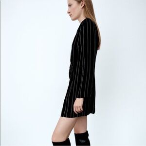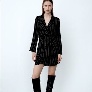 PTP: 15” Length: 33” Blazer style dress with lapel collar and structure shoulder pads. Featuring gathered detail at the waist and double breasted fastening with buttons Super flattering 5